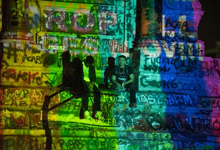 It’s now a new community space where graffiti, music and projected images turn the statue of Lee from a monument to white supremacy into a backdrop proclaiming that Black Lives Matter.